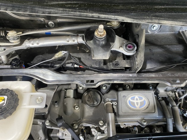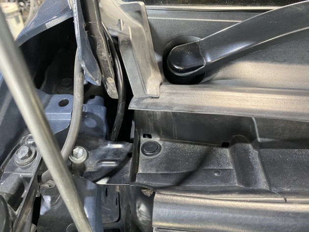 ボンネットの開閉に影響の無いようにボンネットヒンジからワイパーカウル内を通します。