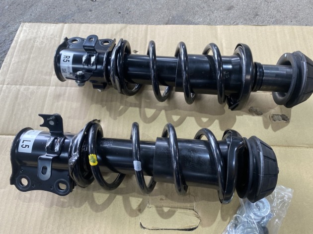 フロントは、純正ショックのアッパーマウント部を延長するお手軽仕様でした。