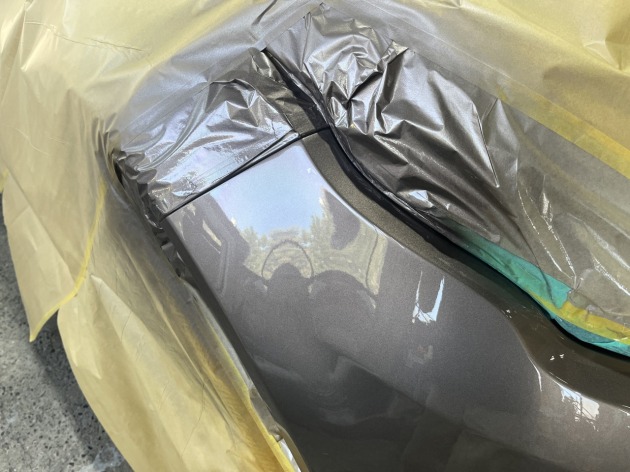 レンジローバーイヴォークのフロントバンパー板金塗装修理ご依頼いただきました。 フロントバンパーのサイド面(フェンダーアーチモール近く)に1ヶ所、小さめですが塗装欠け傷がついてしまったようです。 まずは
