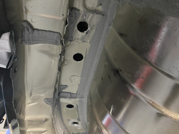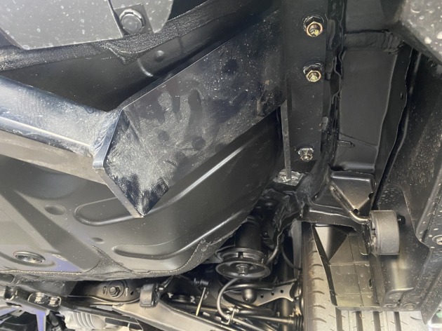 穴を開けた所にボルトを通して防錆塗装とシーリングを施し、ヒッチメンバー本体を取り付けました。