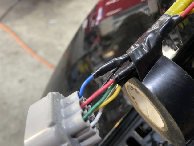 バックランプはリアゲートにあるバック信号線から引き込み、ブレーキ・ウィンカー線はテールランプ配線に割り込ませて接続しました。