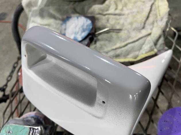 取り付け時に使用したであろう雨漏り防止のシーラーが悪さをして塗料をハジキますが・・・なんとか塗りきって、磨き上げて完成です。