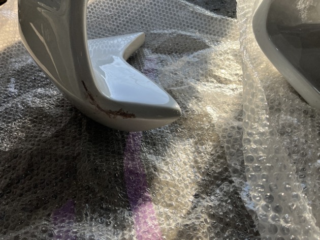 取り付けにかかる負荷を見越してある程度調整して締め込んだ状態でヒビ割れ箇所をボンド付けしてから取り外して、両サイドのパーツだけお預かりとなりました。