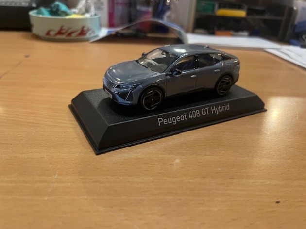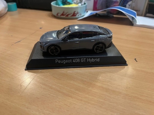 輸入車ディーラー様からプジョー408GTのミニカーを色替え塗装ご依頼いただきました。
