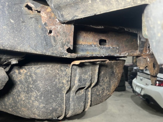 ランドクルーザー95プラドの車検に向けて左リアフレーム錆穴修理
