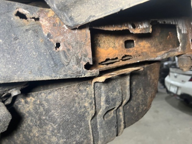 一番腐食が酷い左リアフレームに空いた錆穴を修理します。