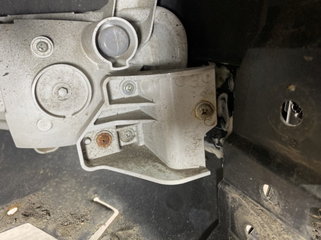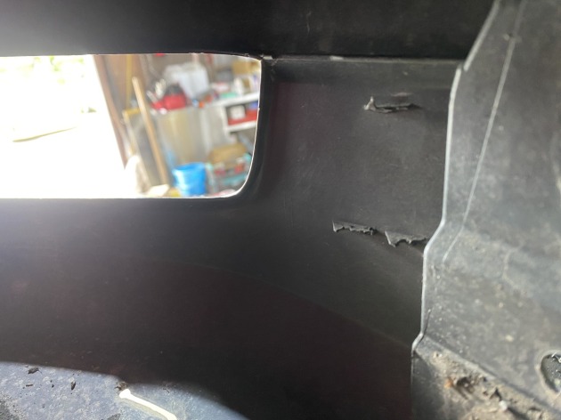 冬にバックで雪山に刺さってしまったらしく、バックフォグ取付部が押されて破損したようです。