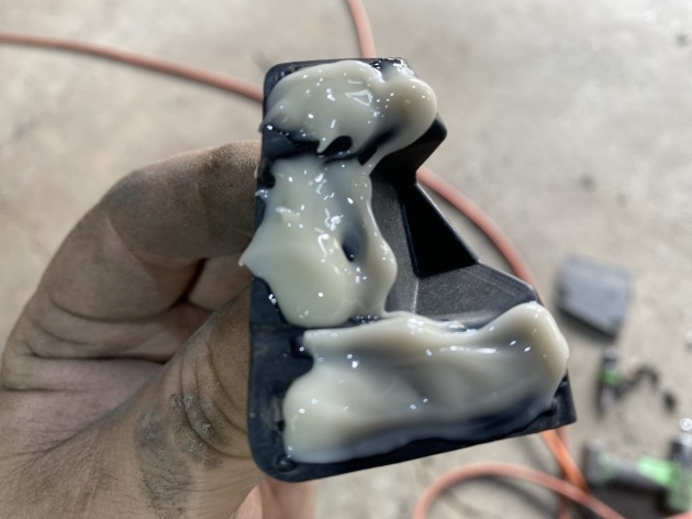 取付ベースに2液性の強力なボンドをたっぷり塗って、リアバンパーに取り付け・固定しました。