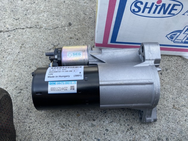 古い車とはいえ外車の新品セルモーターは金額と納期が掛かるので、金額も安く納期の早いリビルドセルモーターを取り寄せて交換します。