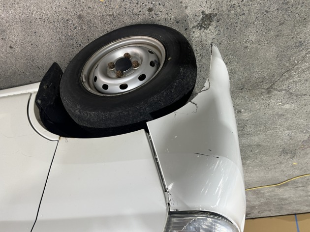 ハイゼットカーゴの破損したバンパー取付部を作成して部分塗装にて修理