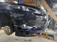 凍結路面でスリップして雪山に乗り上げてしまい、装着しているモデリスタ製フロントスポイラーを破損してしまったトヨタハリアーが入庫しました。 破損箇所は大きく割れて欠損してしまっているので、新品交換修理に