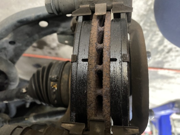 N-BOXの限界まで減ったブレーキパッドを交換してユーザー車検代行完了 2025年11月22日 ホンダN-BOXのユーザー車検代行ご依頼をいただきました。まずはリフトに上げ、下回り点検とエンジンオイル交換もします。下回りに不具合は無く、続いて足回りを点検します。ブレーキパッドの残量をチェックしたら限界まで減っていました。新品のブレーキパッドを手配して交換します。幸いキャリパーの固着やディスクのダメージはありませんでした。問題箇所を直して検査場に向かい、無事に車検合格して完了です。この度はユーザー車検代行依頼ありがとうございました。