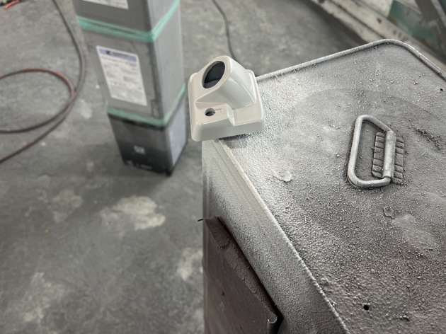 スズキジムニーノマドのバックカメラカバーをボディ同色塗装ご依頼いただきました。 まだ納車されていないようで、バックカメラカバー単体でお預かりしました。 このバックカメラカバーに付いているウォッシャーノ