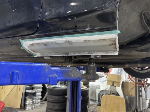 左リアのジャッキアップポイント辺りに空いた錆穴を修理ご依頼いただきました。