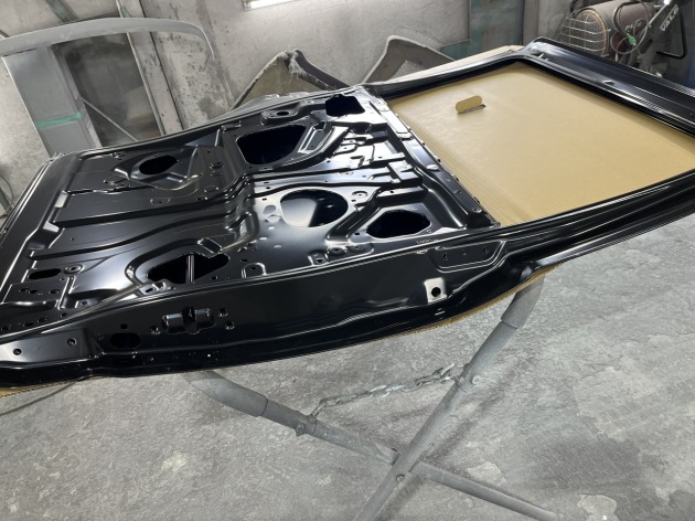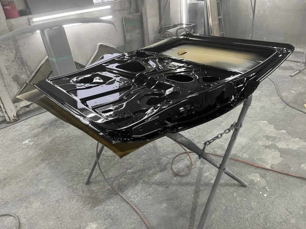 オーダーした新品のスライドドアとドアガーニッシュが入荷したら、塗装作業を進めていきます。