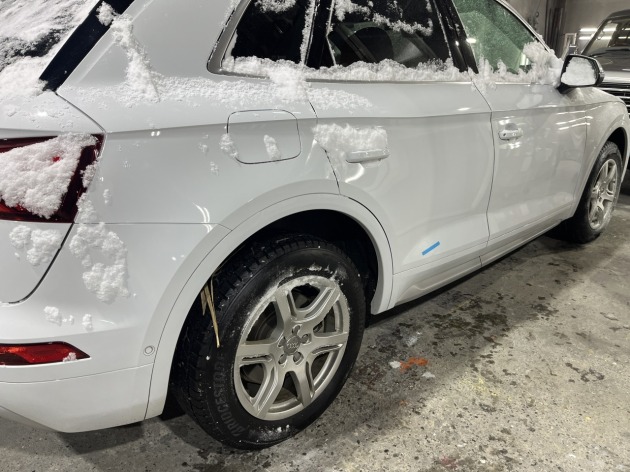 アウディQ5右リアドアのプレスライン凹み/周辺歪みを板金塗装修理