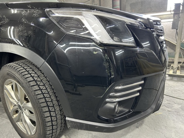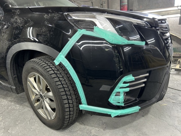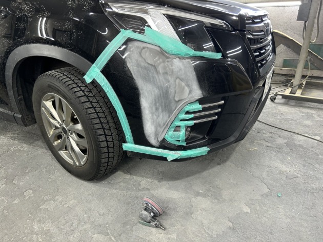 フォレスターのバンパー擦り傷を修理費用抑えるため脱着無しで板金塗装