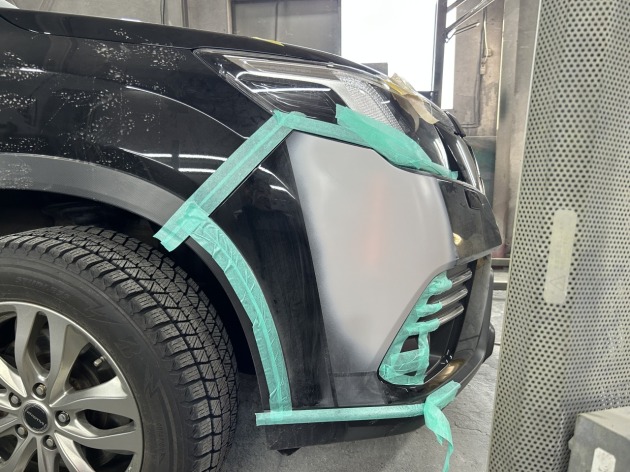 フロントバンパーは外さず脱着作業無しで板金塗装します