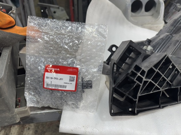ホンダフリードの右ヘッドライトが不点灯の為 バルブ交換ご依頼で入庫しました ヘッドランプバルブを交換しても点かないので 点検して原因を調べます HIDユニット(バラスト)が不良でしたので 部品を手配し