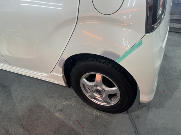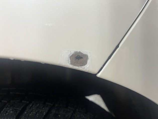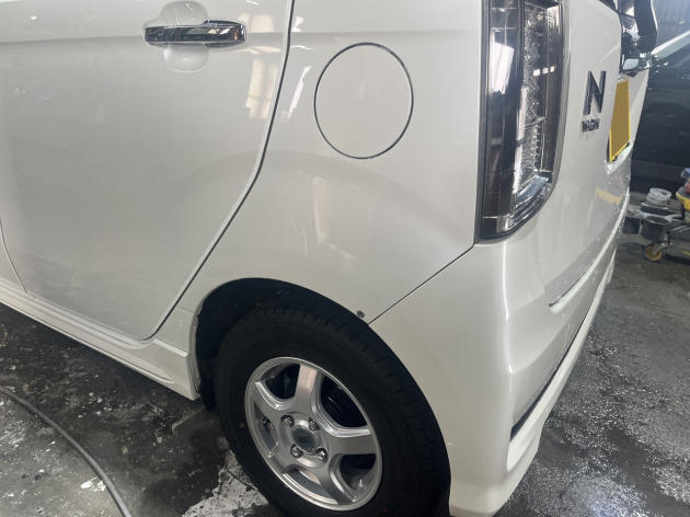 N-WGNの左リヤフェンダー点サビ(針穴状の腐食穴)を板金塗装修理