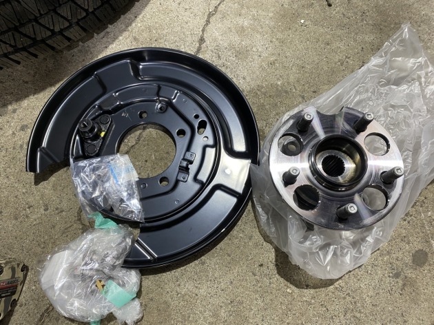 新品のハブベアリングアッセンブリー(ハブアッセンブリー)とブレーキバックプレートを取り寄せました。