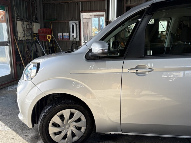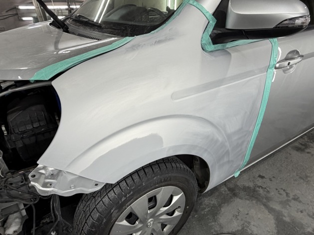 接触事故で損傷したトヨタポルテの左フロント周りを保険対応修理