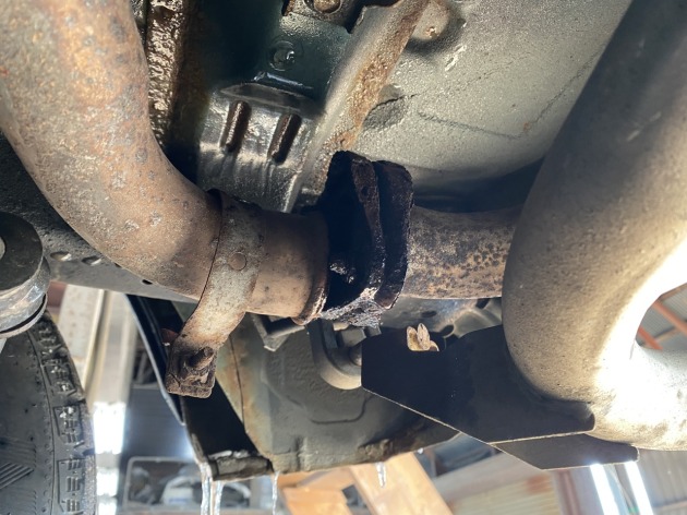 下回りを打ったようで、その衝撃でサビたフランジの溶接部分から折れていました。