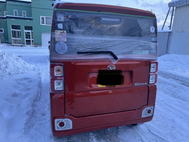ダイハツウェイク バック同士の衝突事故でリアガラスが割れてレッカー入庫