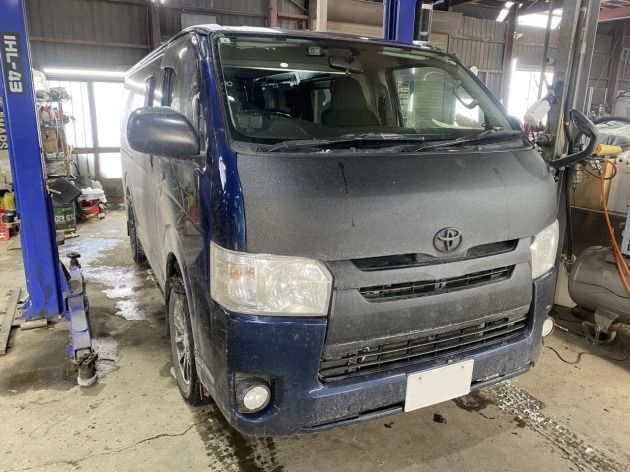 ハイエースハブボルト折れてハブボルト交換! 2026年1月30日 トヨタハイエース、ハブボルト交換のご依頼頂きました。スペーサー装着時に締め過ぎて折れた様です。ハブボルト交換の為にハブナックルからハブ周りを取り外します。新品のハブボルトを用意しました、折れてないハブボルトにも不安が残るので全交換します。古いハブボルトを打ち抜き、新しいハブボルトに入れ替えました。ハブボルト交換後にハブナックルにハブ周りを組み付け作業完了です。これで不安無く冬道も走れますね。この度はハブボルト交換依頼ありがとうございました。