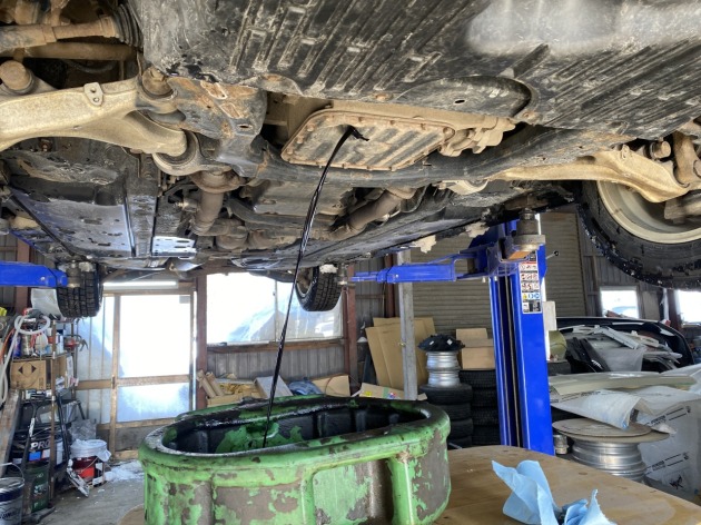 トヨタマークXのエンジンオイル交換ご依頼をいただきました。 リフトに上げエンジンオイルを抜きます。 新しいエンジンオイルを入れ作業完了です。 定期的なメンテナンスでコンディション維持にも繋がりますね。