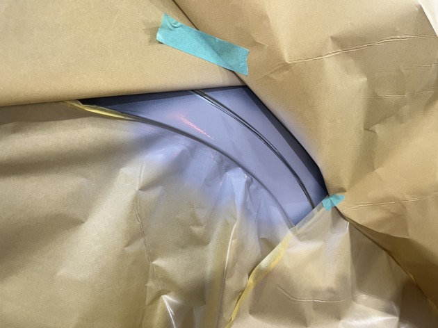 傷や凹みをパテ整形して、サフェーサーという下地材を塗ります。