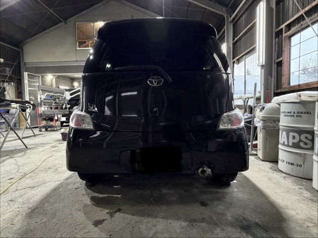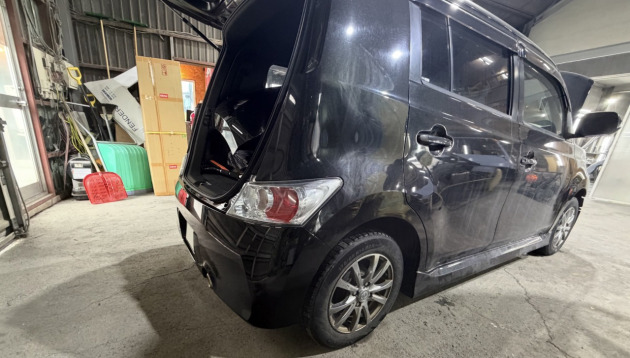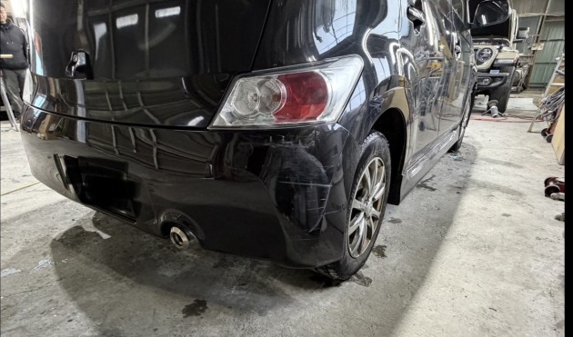 トヨタbBの破損したリアバンパーを新品リアバンパーに交換修理