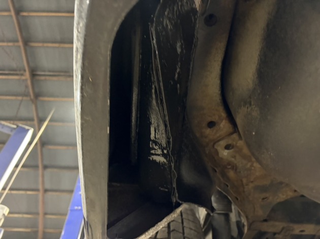 オーナーさんに穴空きの状況をご説明したところ『両方共しっかり直して車検を取得したい』とのご意向をいただき、アンダーボディ錆穴修理ご依頼をいただきました。