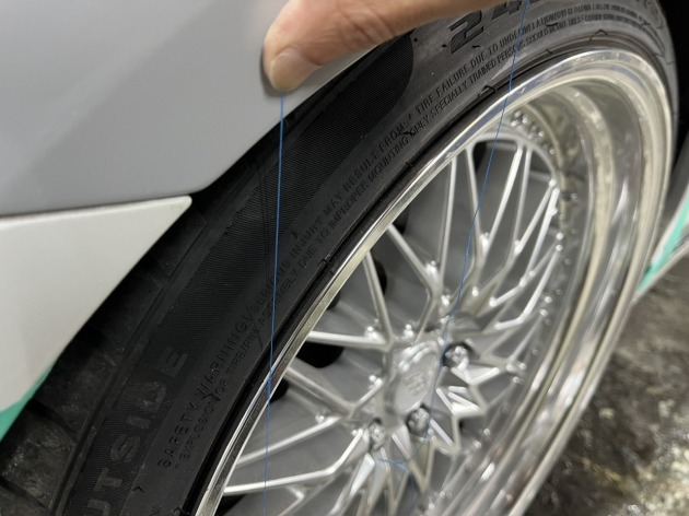 そのホイールに合わせたフェンダー出具合を爪折り器具を使ってオーナーさん自ら DIYでのフェンダー爪折りを施工