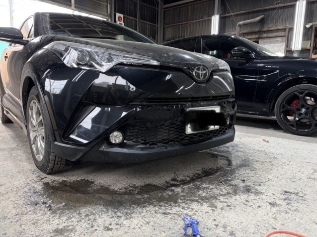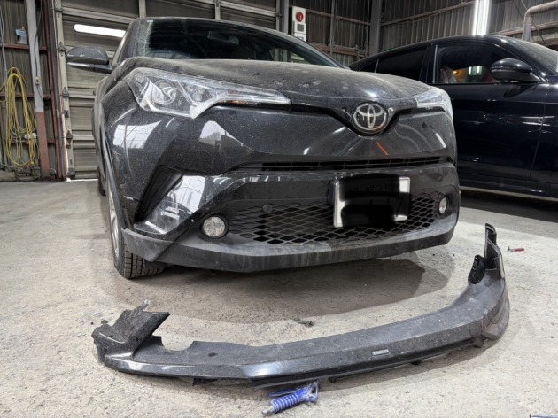 C-HRの破損したフロントスポイラーを修理はせず綺麗に取り外し対応