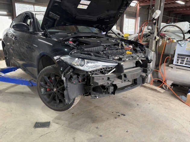 アルファロメオジュリアのフロントバンパー浮きを簡易接着修理