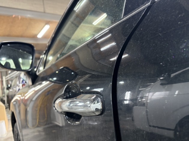 トヨタ ハリアー タッチアップ補修でのご入庫です。 小さな傷が気になるとのことで、 ホームページをご覧いただきお問い合わせくださいました。 左フロントドアおよびリアドアに、 色欠けが確認できました。