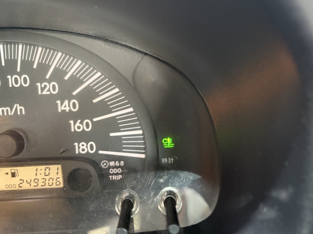 ブースターを繋いでエンジンを掛けてみると、バッテリーマークが点灯してます。