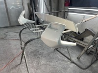 ピッカピカなブラックボディのメルセデスベンツGLSが入庫です。 サイドステップとリアバンパーの素地部分をシボ取りしてボディ同色塗装ご依頼を承りました。 まずは施工するパーツをバラバラに分解して、作業開