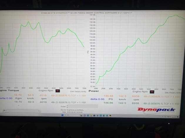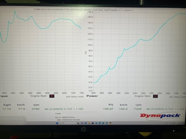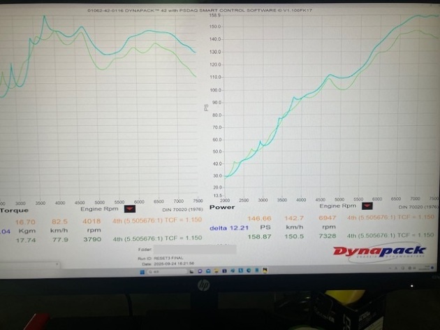 セッティング後は、パワー158.8PS、トルク17.7kgm