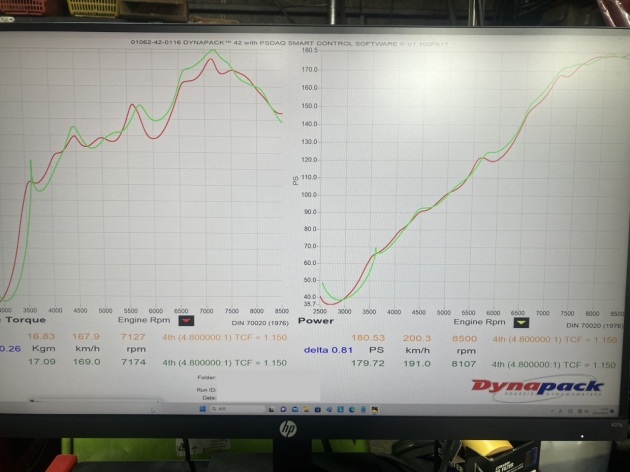 点火時期やA/Fを色々と変更しましたが、1.6LのNAはなかなかパワーアップが難しいですね…
