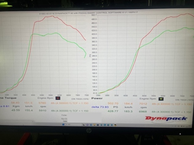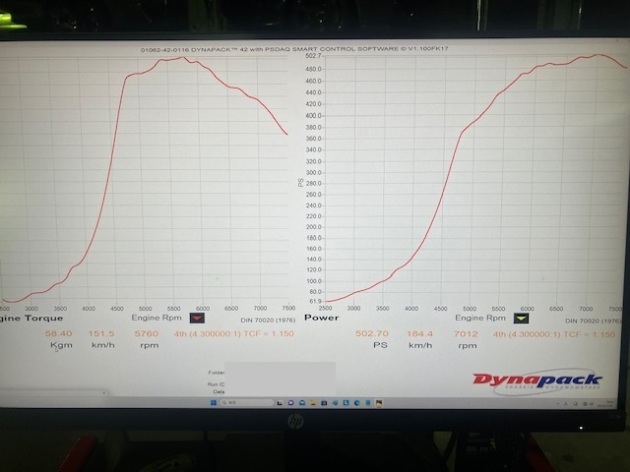 ダイナパックに設置して500馬力を目標にセッティングを開始します。