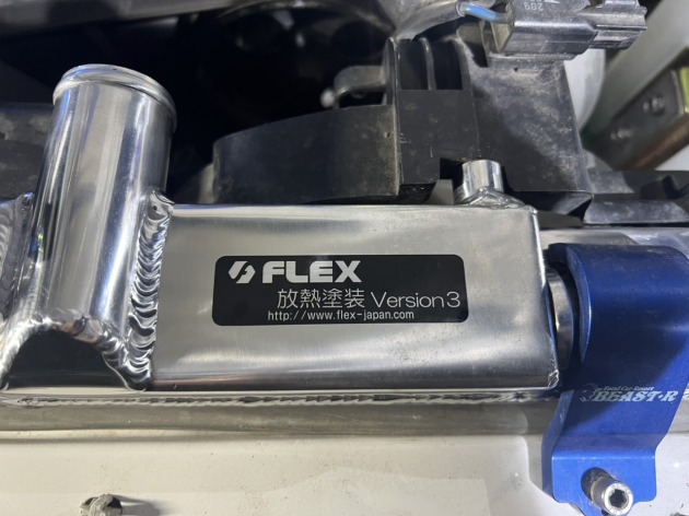 KOYORAD製のラジエターの従来の性能は変わらず、フレックスの放熱塗装でさらに温度が下がるというシステムです。