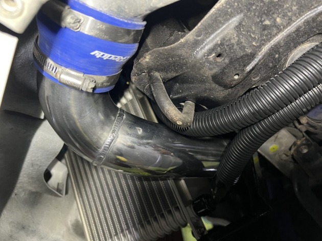 インタークーラーパイピングに干渉してしまったので、オイルクーラーを取り付け後にパイピングを製作しました。