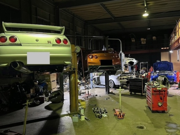 本日の工場は32GT-R・33GT-R・34GT-R・35GT-RすべてGT-Rです。