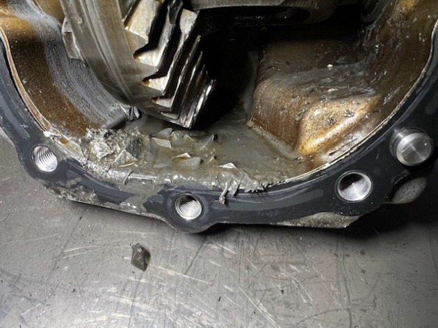 エンジンを下してデフケースカバーを外したら、やはり焼き付いて破損していました。