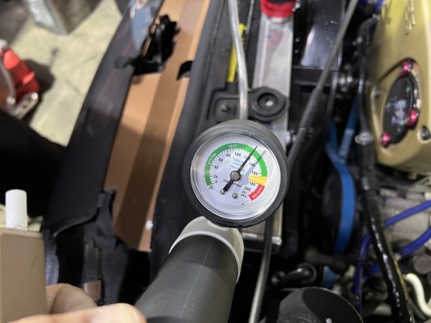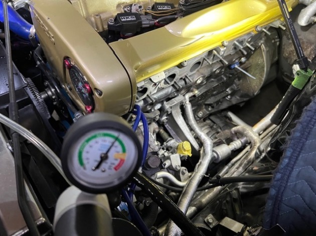 修理完成後にダイナパックでテストを行い、再度クーラント漏れをチェックしていきます。