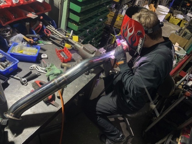 前期と後期が共通になっていて取り付けることは可能でしたが、形状が異なるためそのまま取り付けるとフロントパイプが低くなって路面に擦ってしまいますので加工しました。