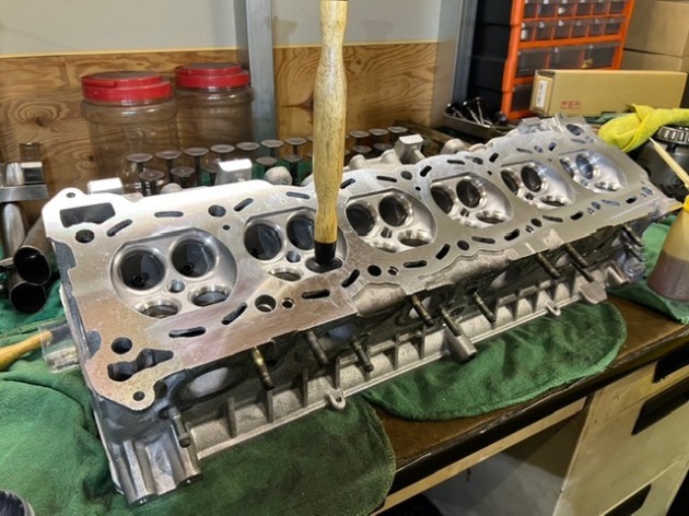 鍛造インテークバルブ、鋳鉄INTバルブガイド、EXHのみレース用バルブガイド、EXHバルブフェース研磨、バルブガイド入れ替え、レース用シートカット、修正面研を行いました。