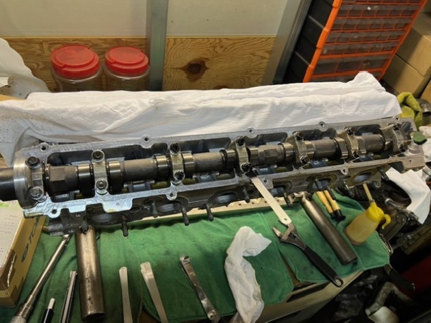 バルブすり合わせ後に洗浄して、HKSのVカムなどを組込してからシム調整を行いました。